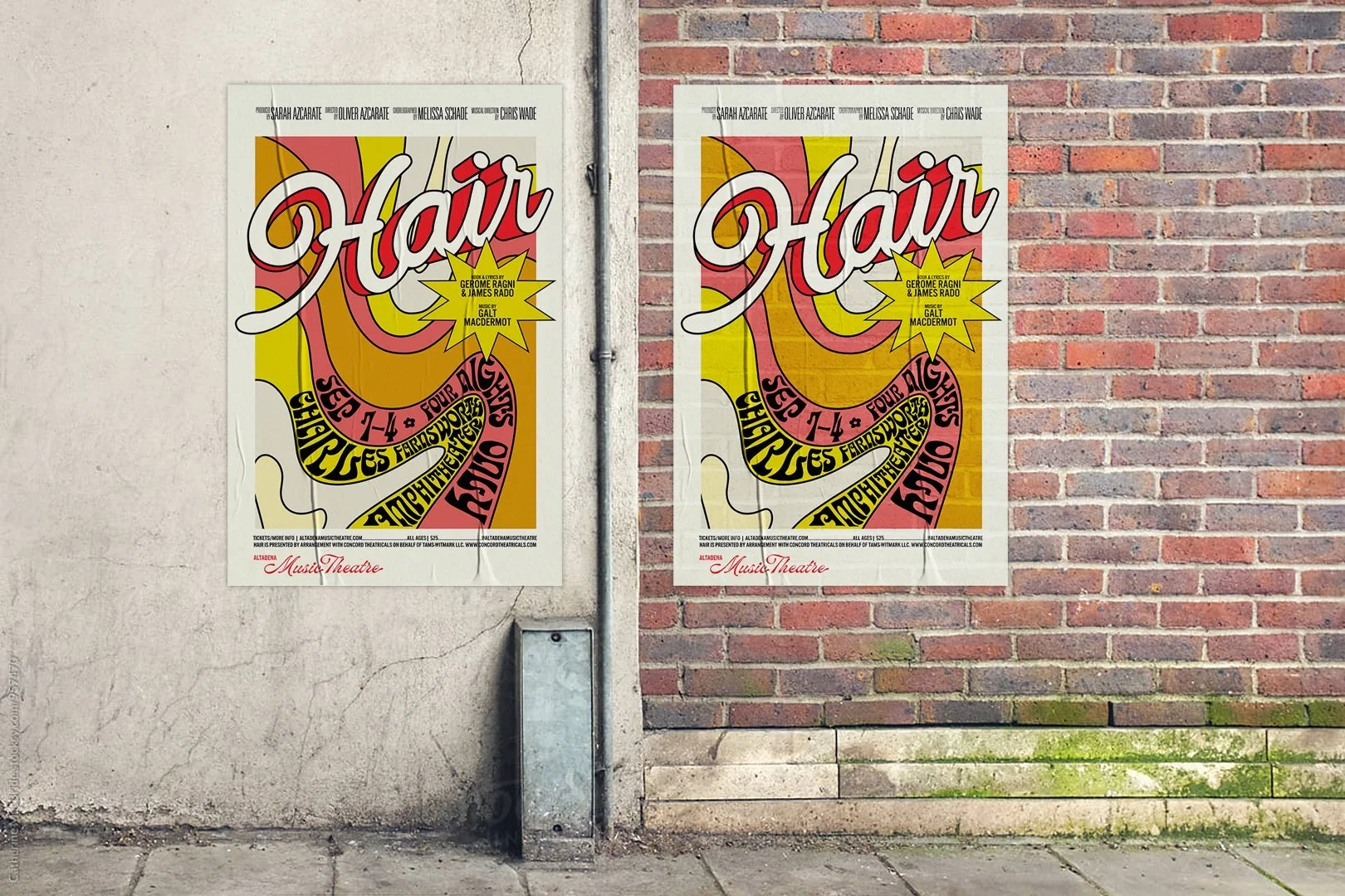 HairBranding and promotional materials for Altadena Music Theatre’s Summer 2022 production of Hair. GRAPHIC DESIGN